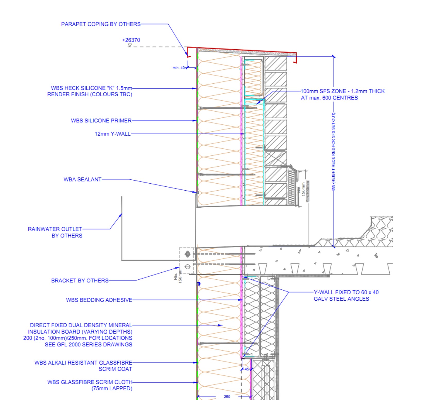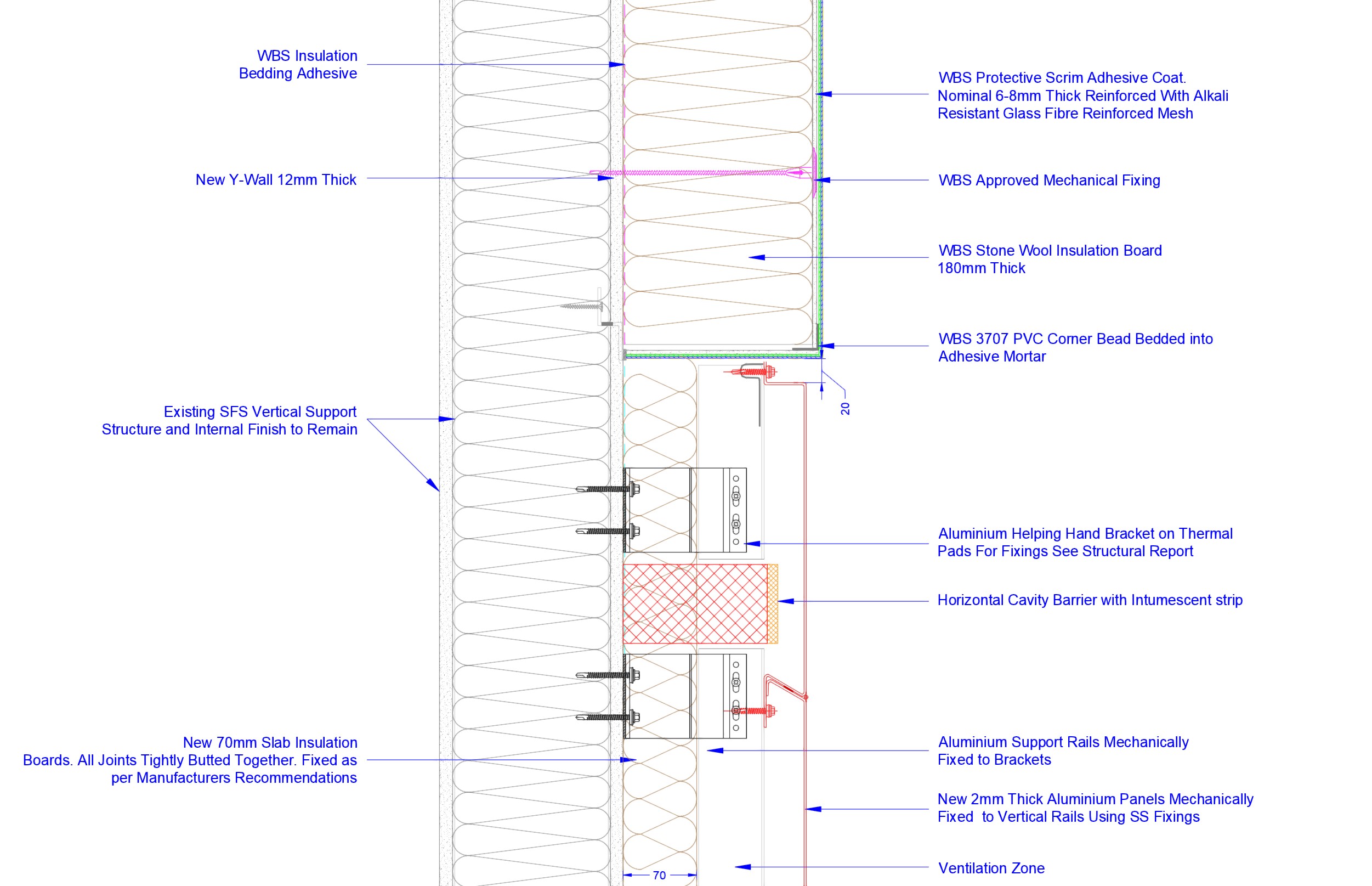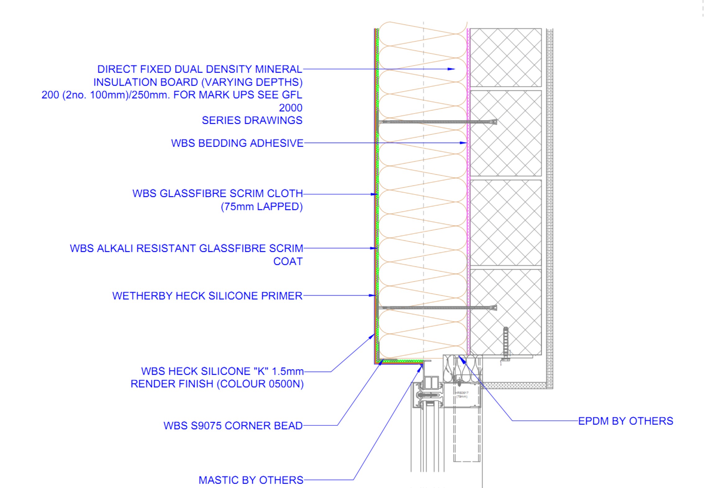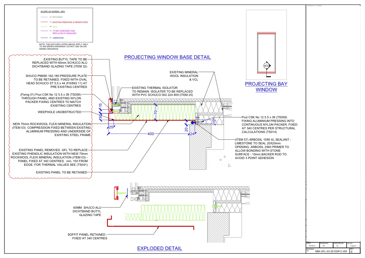 External brick slip and render system on a high-rise residential scheme. Responsible for developing facade system packages in line with building control and guarantee requirements. Produced full technical detail packages ensuring facade system and ancillaries were compliant with UK standards.