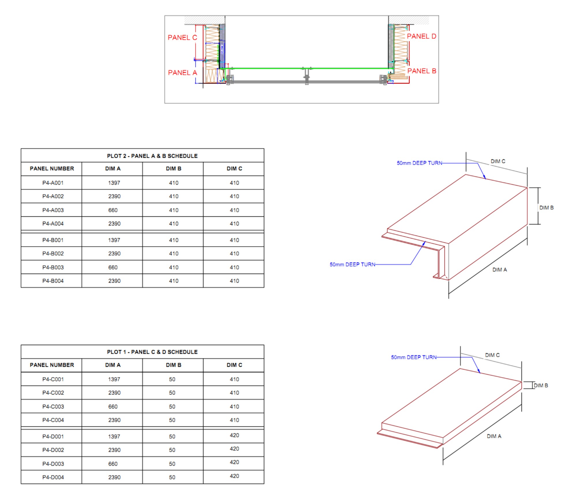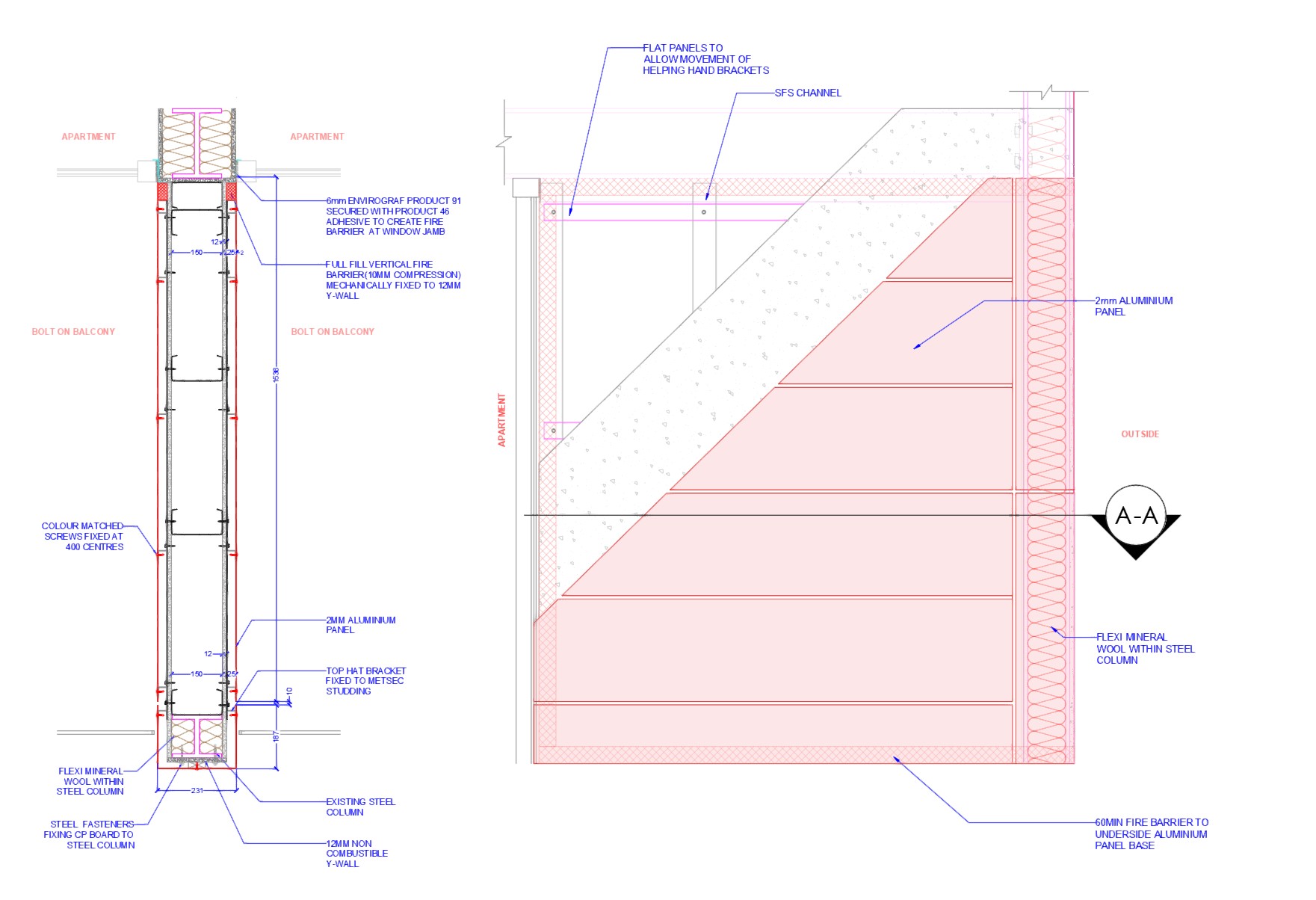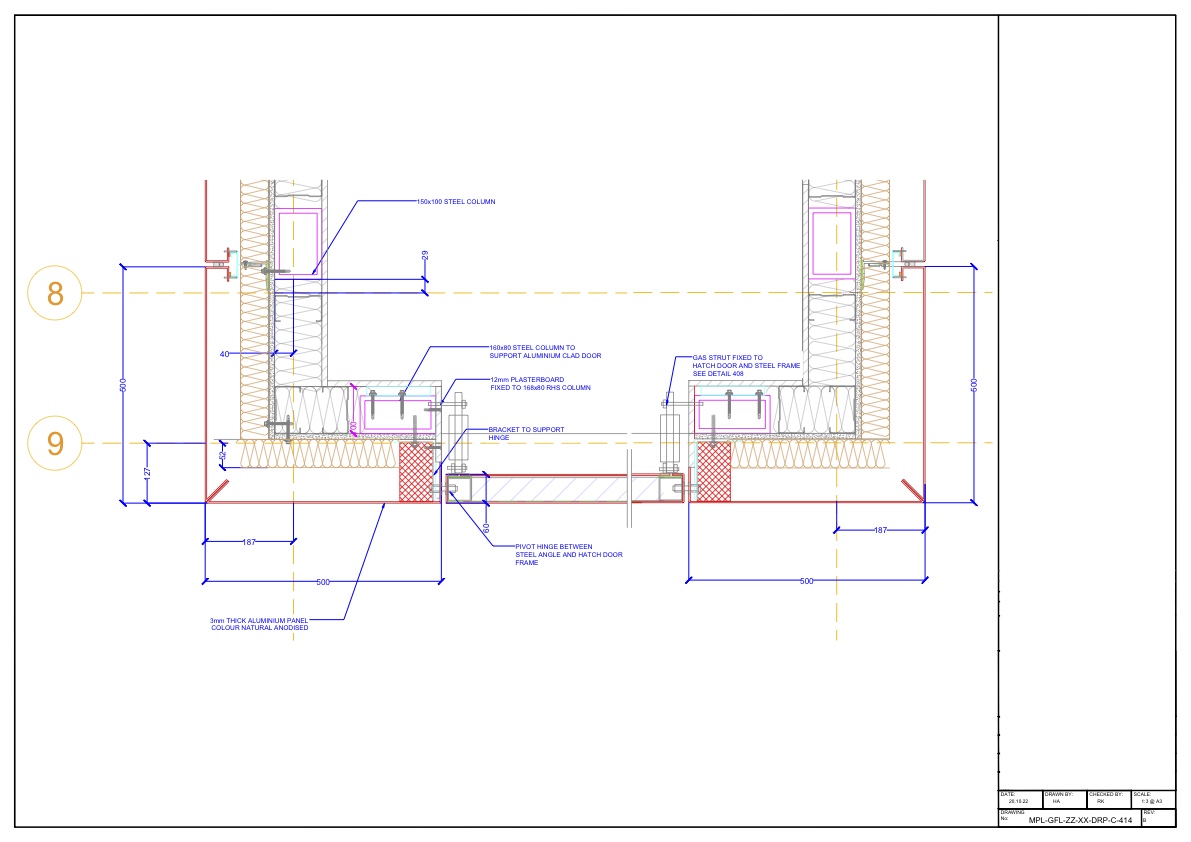 A selection of technical facade drawings produced across various projects, including GA layouts, system details, fabrication packages and interface details.