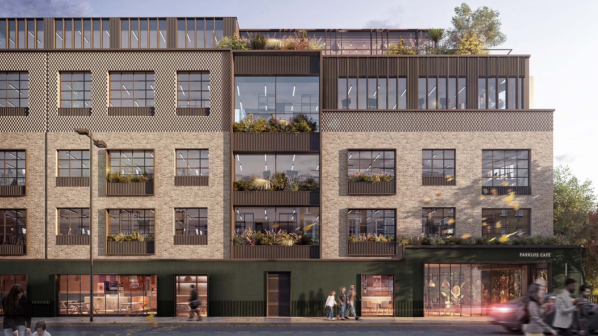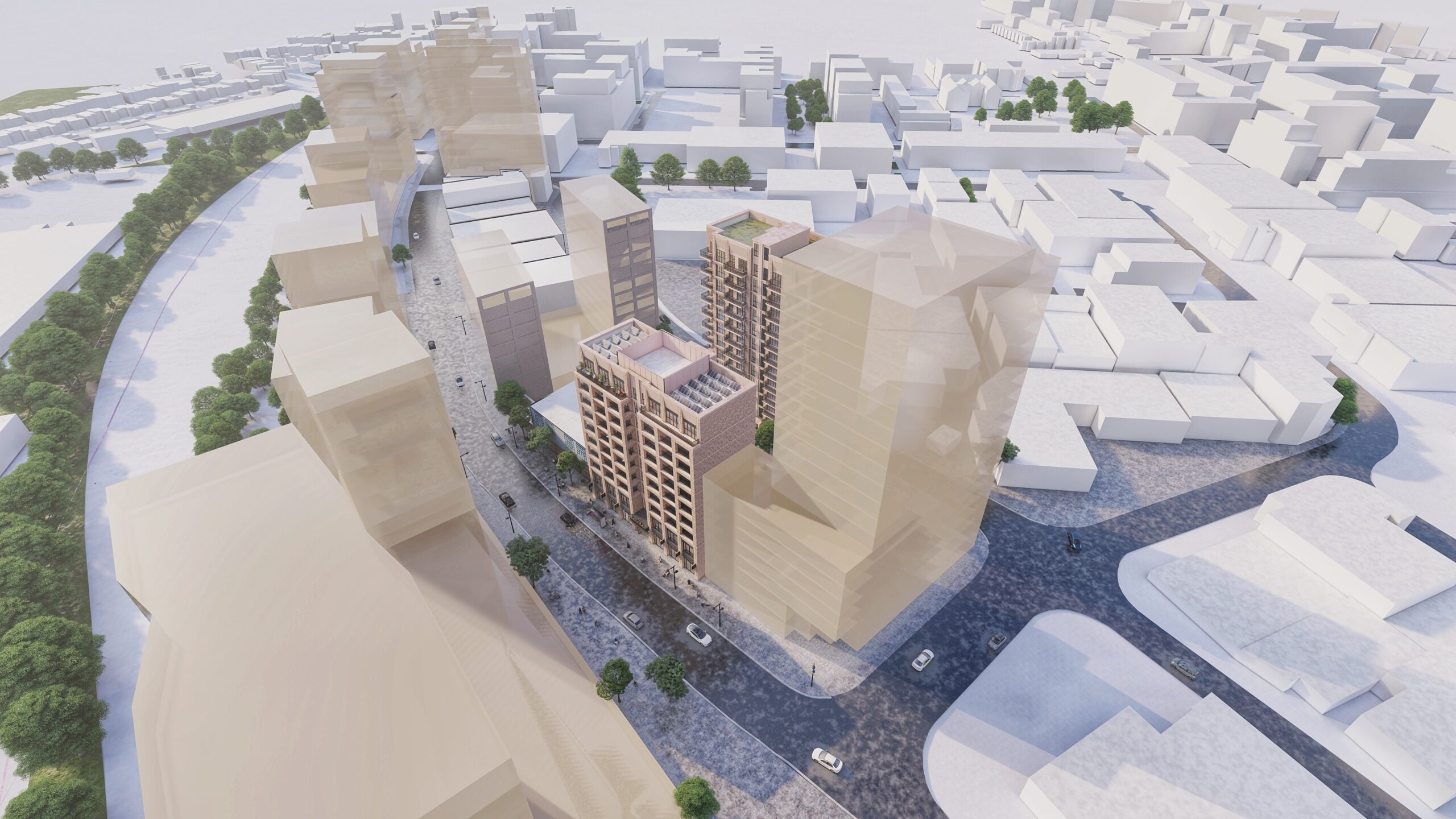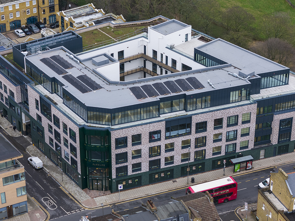 Zinc cladding and external facades on a high-value mixed-use development comprising commercial and residential accommodation across 324 units. Full facade design coordination from concept through to construction issue.