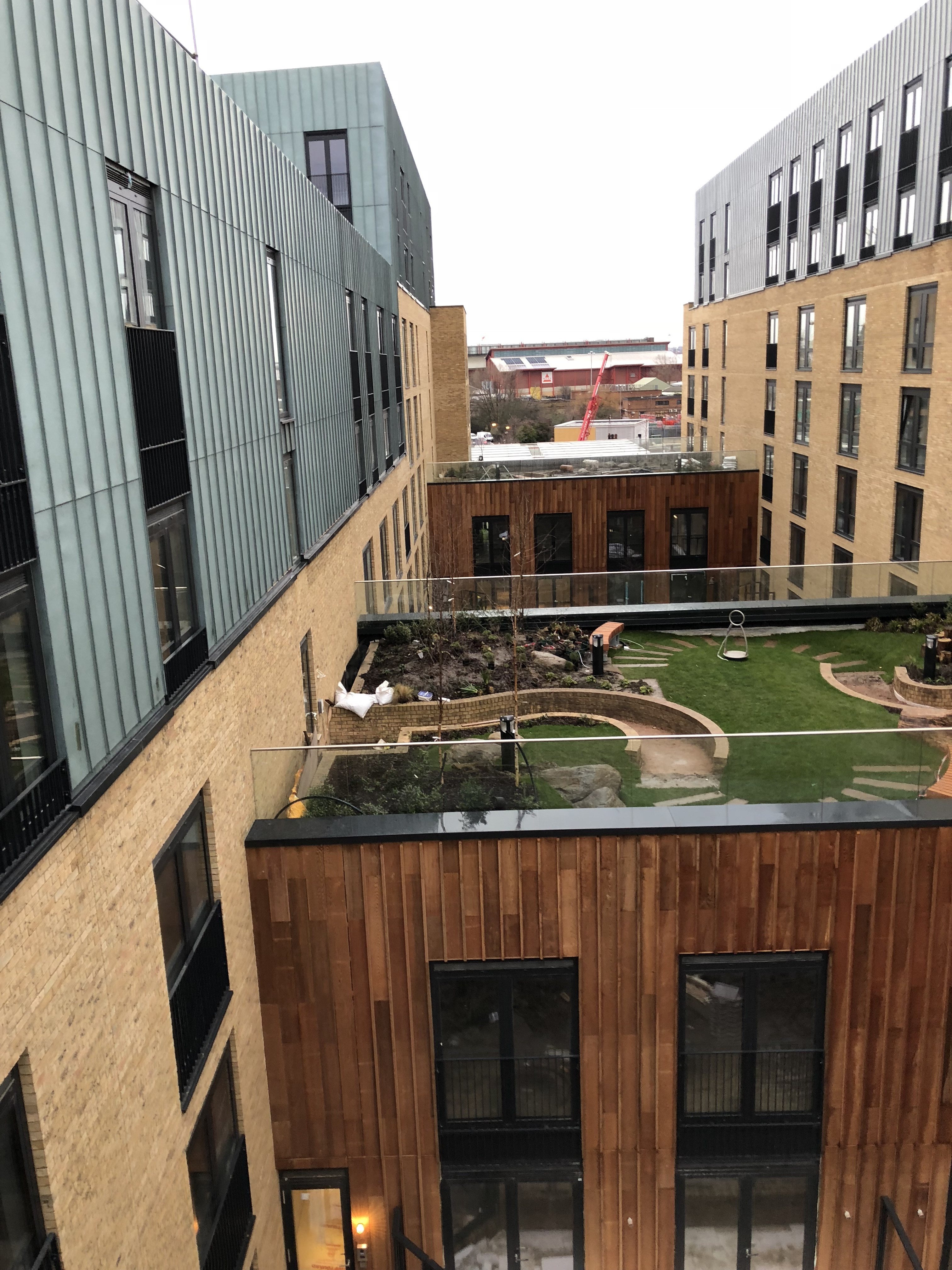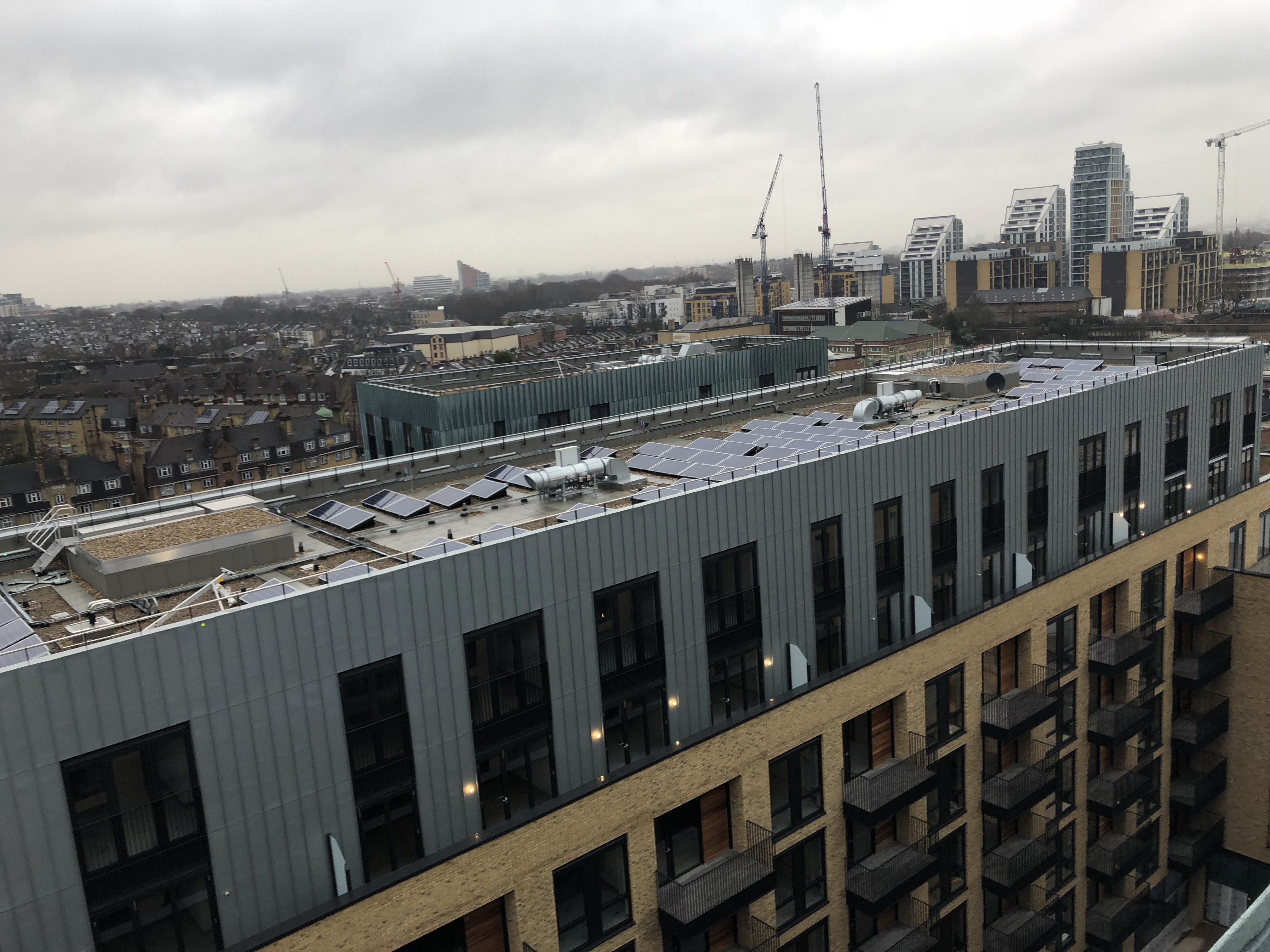 Zinc cladding and balcony detailing on a residential project close to Stratford. Extensive coordination with structural engineers and other subcontractors to deliver a fully integrated facade solution.